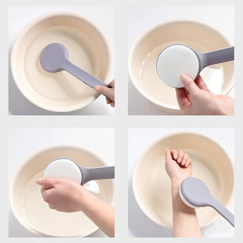 Aplicatorul cu mâner lung este perfect pentru spate, umeri, picioare sau talpă — fără să te mai răsucești, fără ajutor și fără a lăsa zone neacoperite.