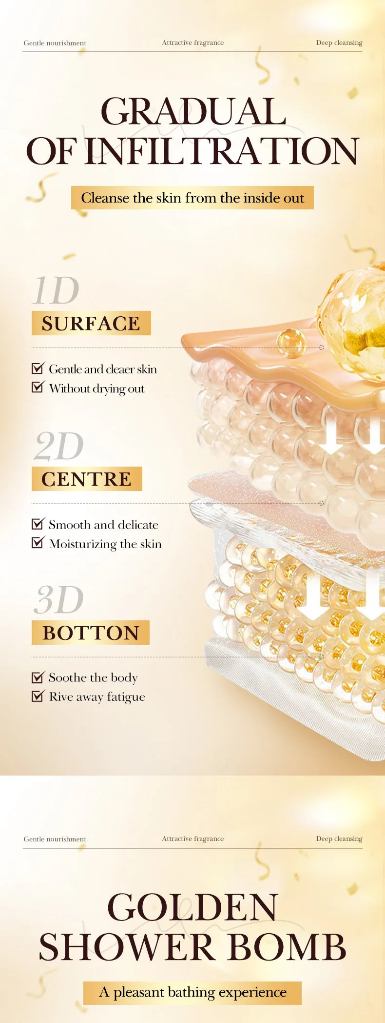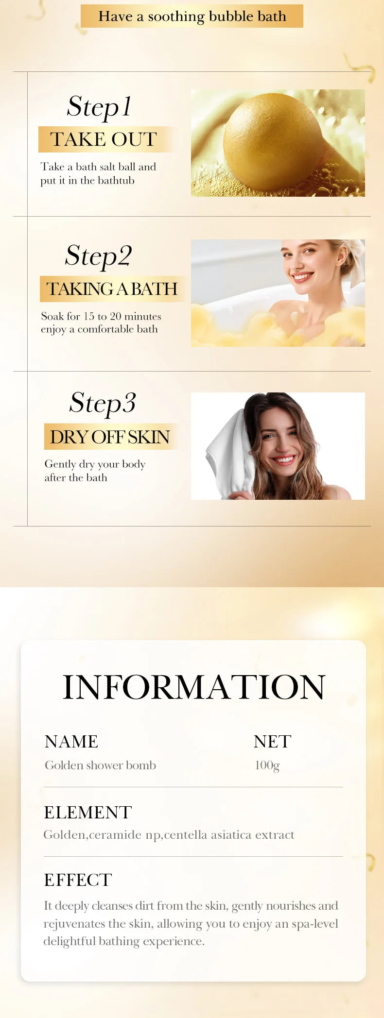 Transformă baia într-un ritual de lux cu bila efervescentă cu extract de sare de mare și particule aurii. Formula relaxează musculatura, hidratează pielea și oferă o experiență de spa chiar la tine acasă.