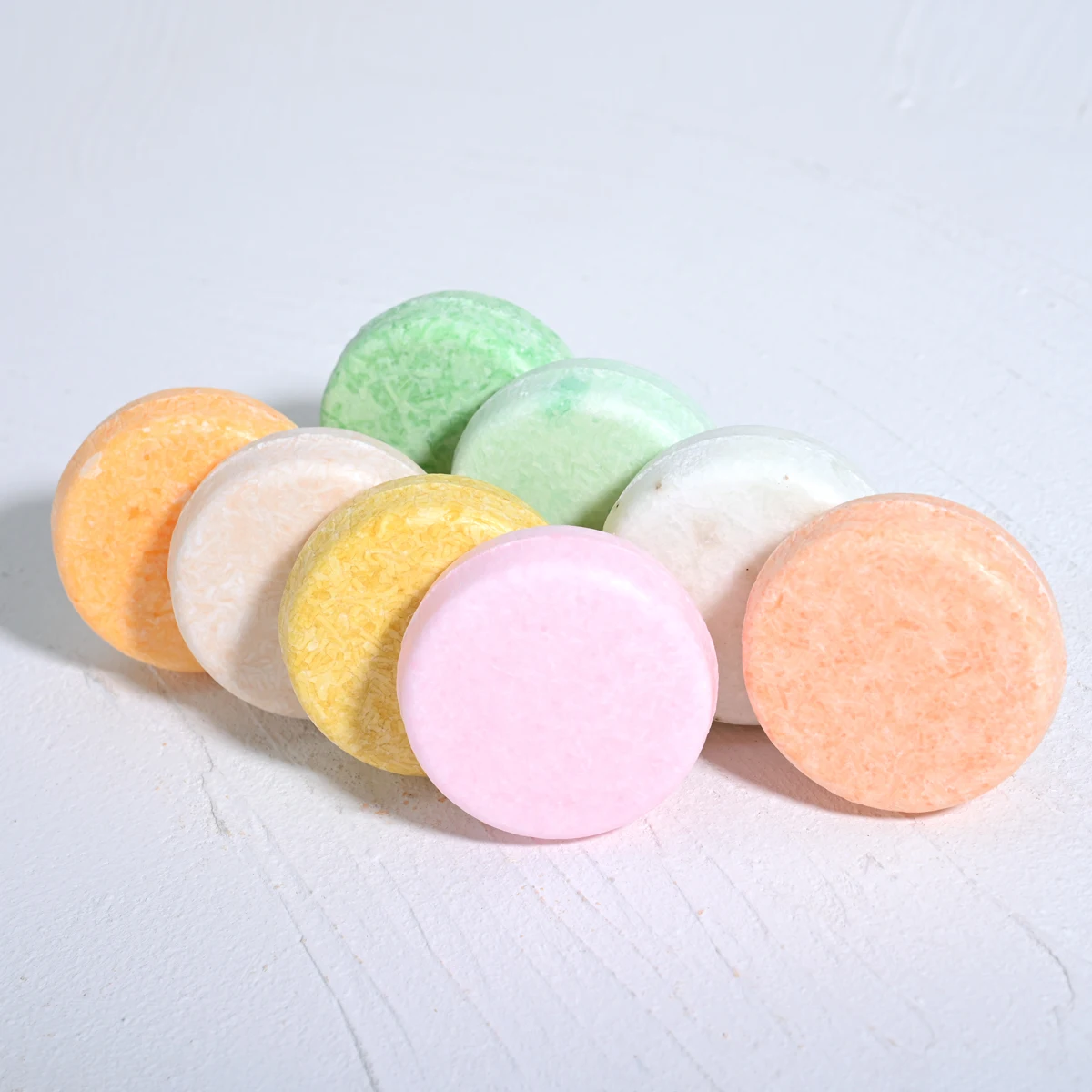 Umezește părul, freacă șamponul solid direct pe scalp și lungimi, masează până face spumă bogată, clătește.