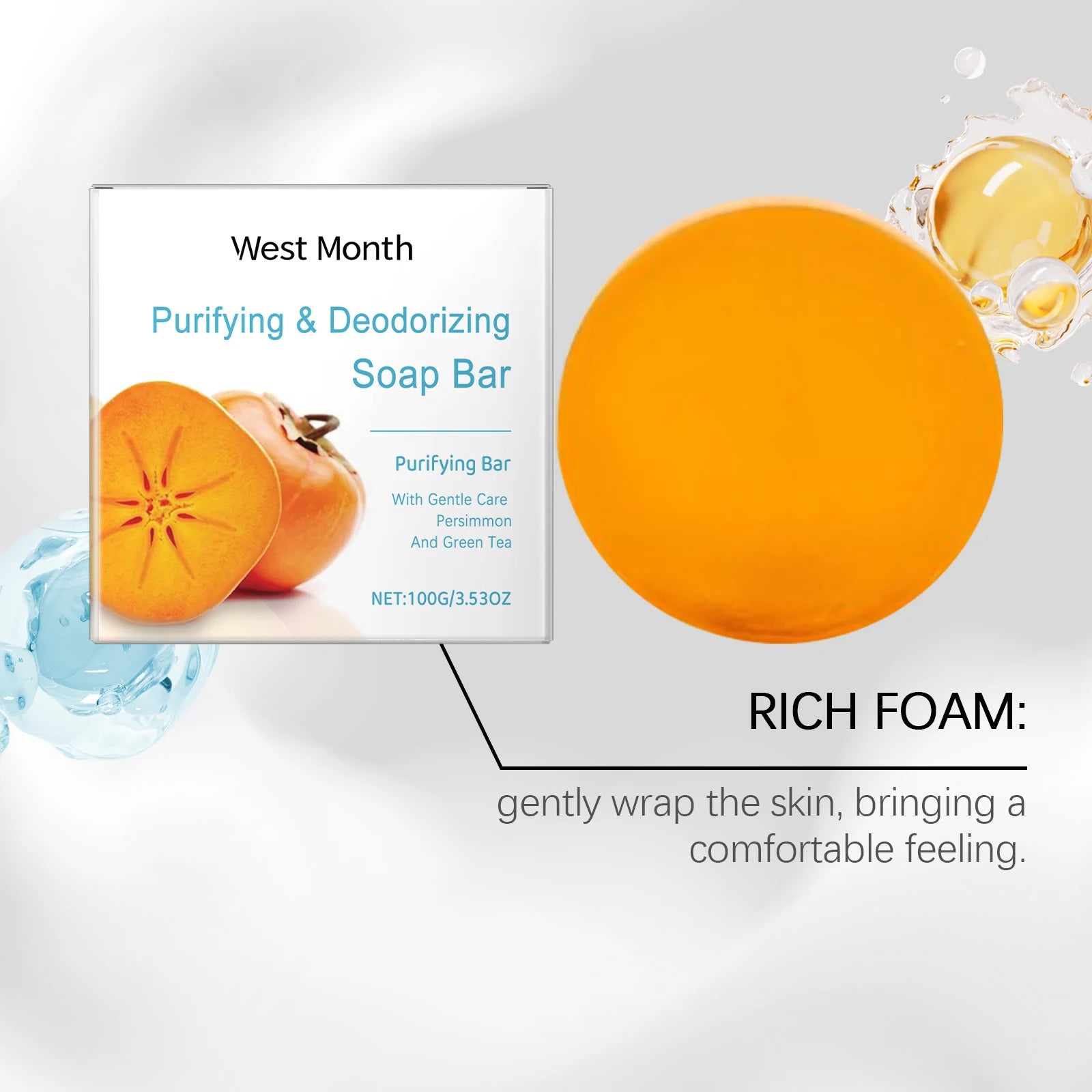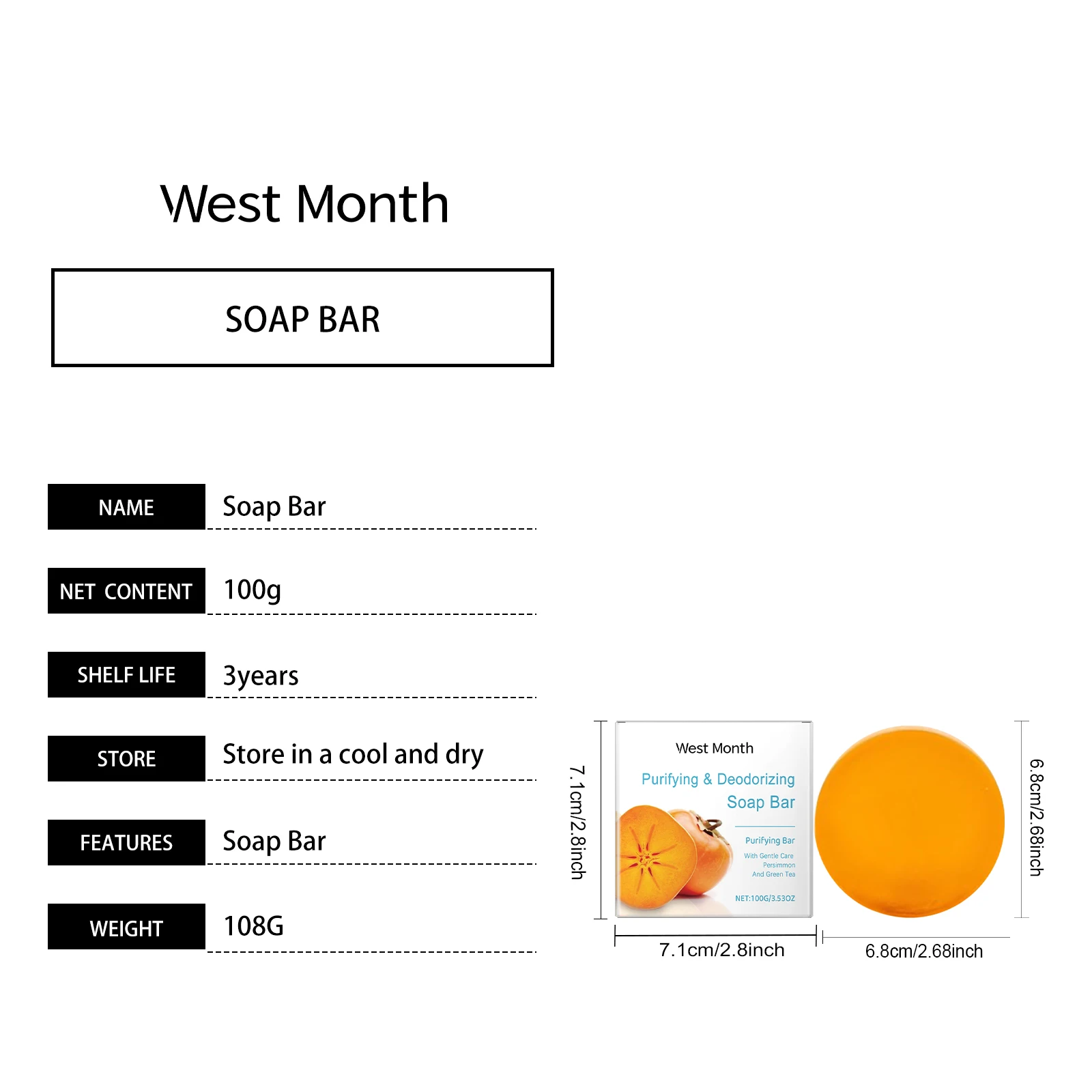 Săpunul solid cu Persimmon de la West Month este alegerea ideală pentru o curățare blândă, eficientă și revigorantă. Formula sa naturală este îmbogățită cu extract de fruct Persimmon, recunoscut pentru puterea lui de purificare, deodorare și hidratare.